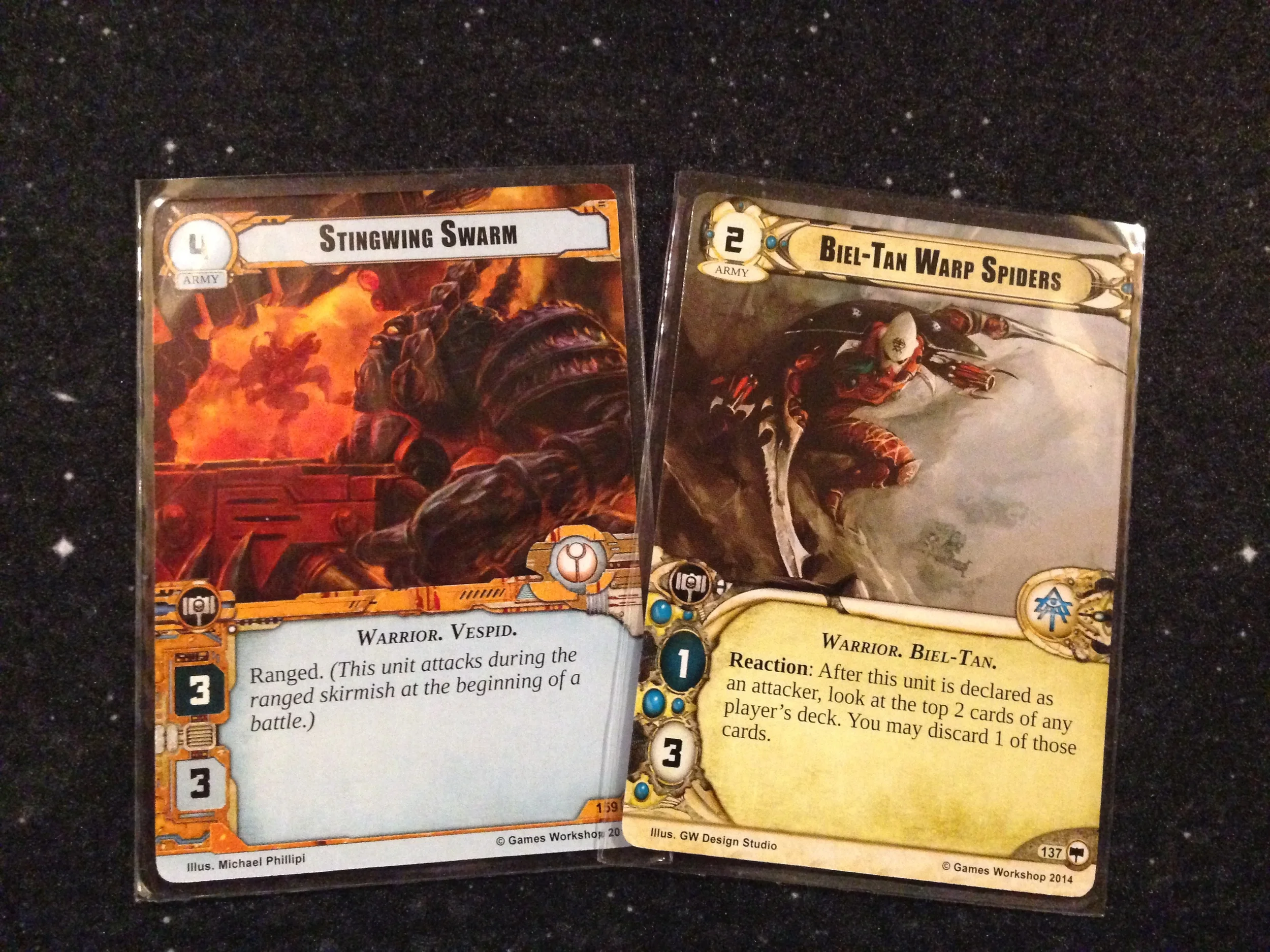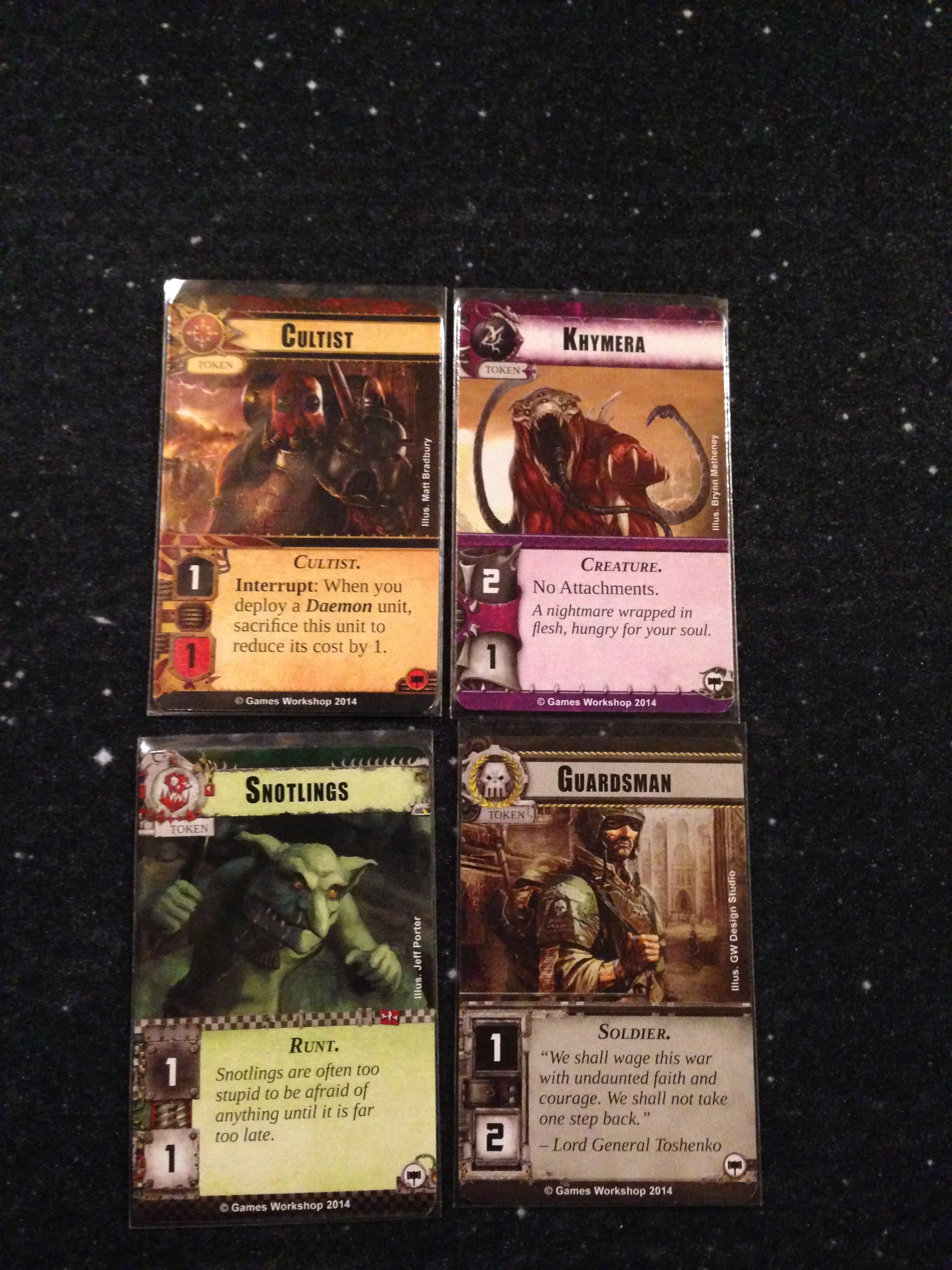 Astra Militarum--These are military fighters: tanks, tactics, interrupts, and strong units.