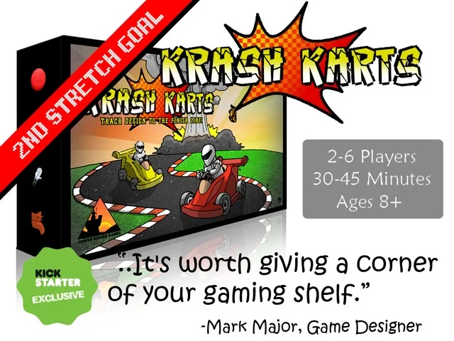 Krash Karts is a build-as-you-go racing game that has players racing toward the finish line in a course that is...well, built as you go! Krash Karts is already funded and racing past stretch goals to allow more players to join the game, and there's still plenty of time for more goals to be unlocked. Like most race games, this looks like it has great potential for nail-biting tension between friends.