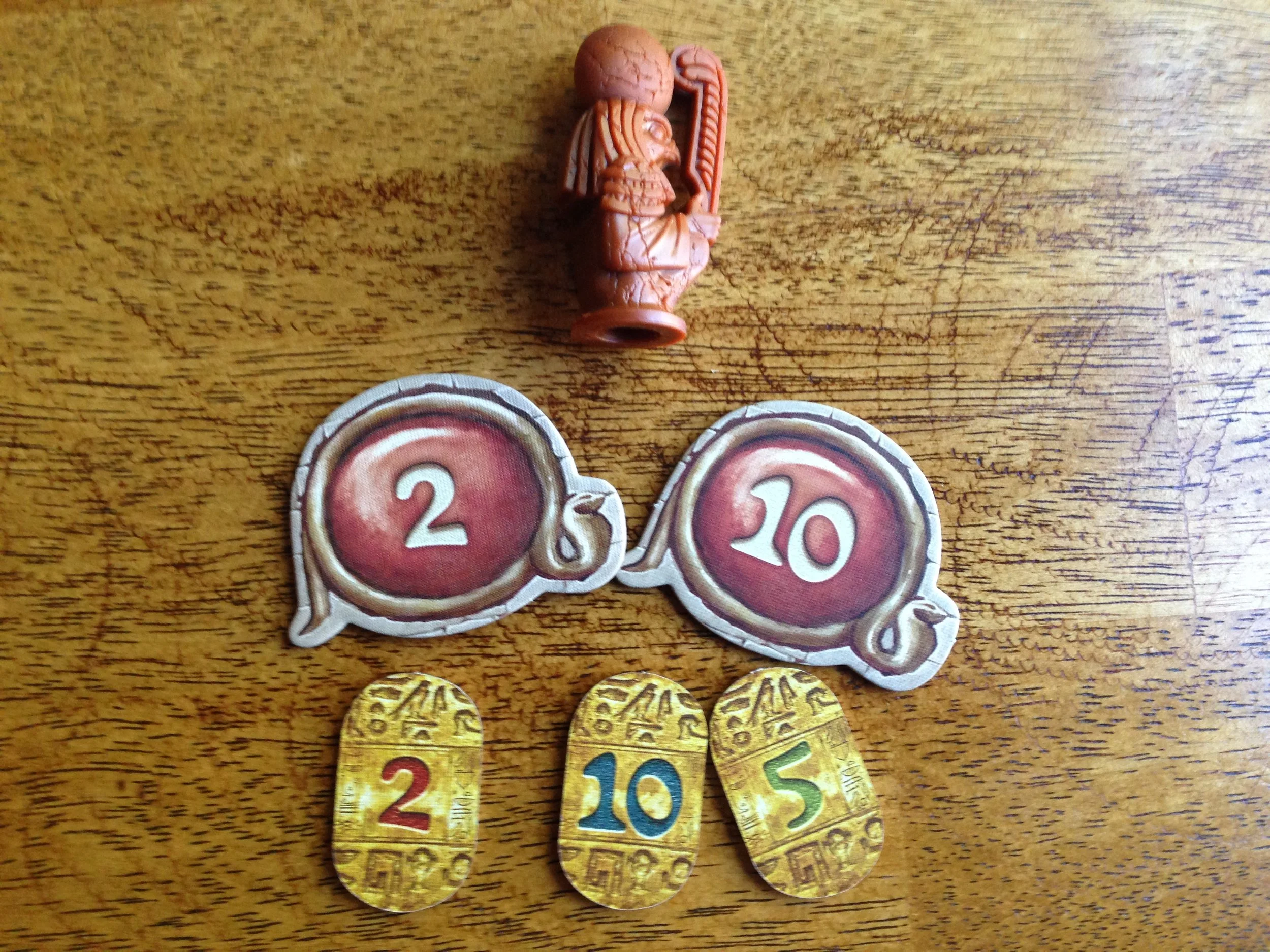 - Whoever has the most Pharaoh tiles gets 5 points, and whoever has the fewest loses 2 points.