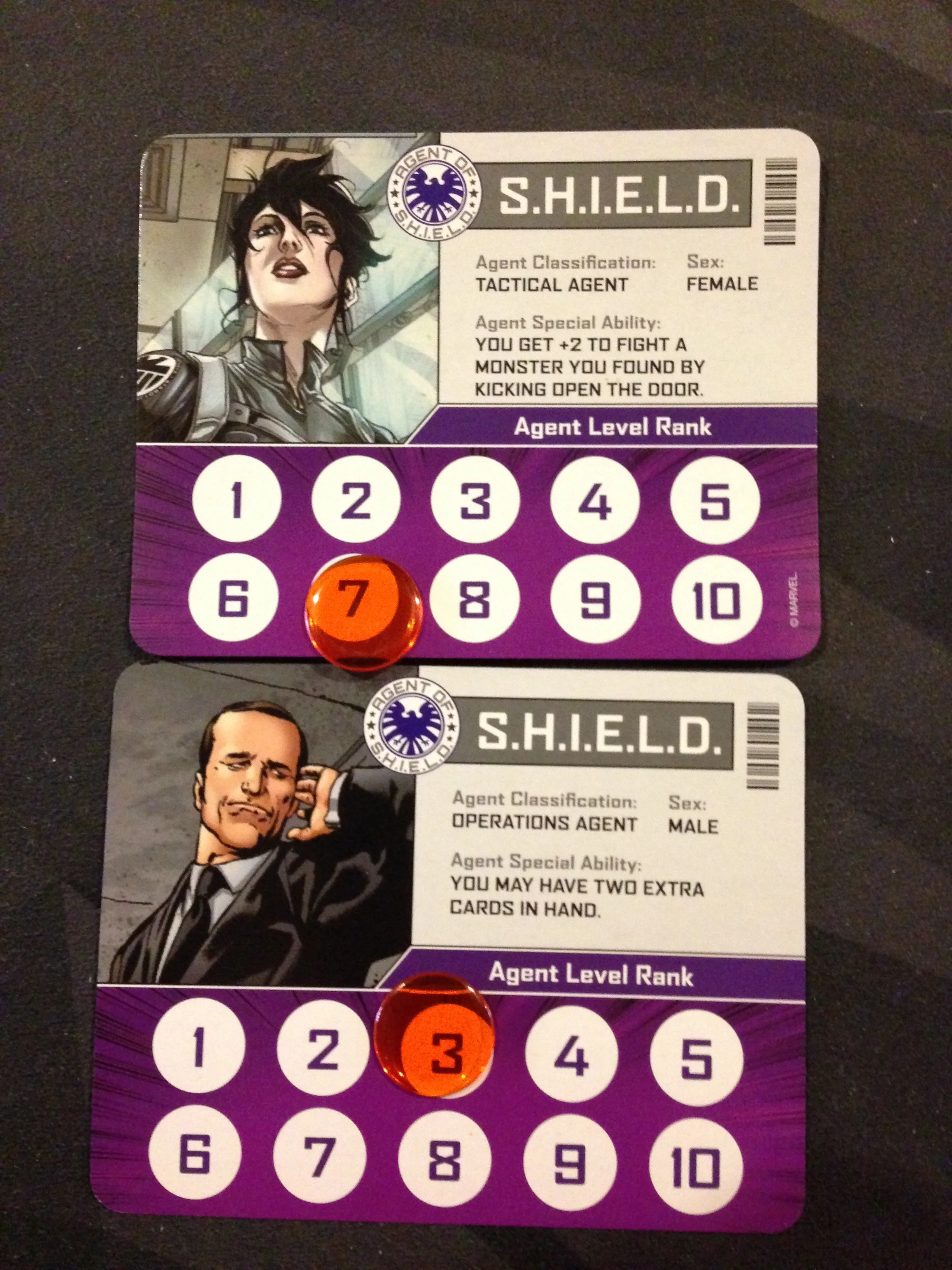 First you'll start with an Agent at Level 1. That's your character, who has special powers, such as being able to hold two extra cards in hand, or getting +2 to fight a monster you find when kicking open a door.