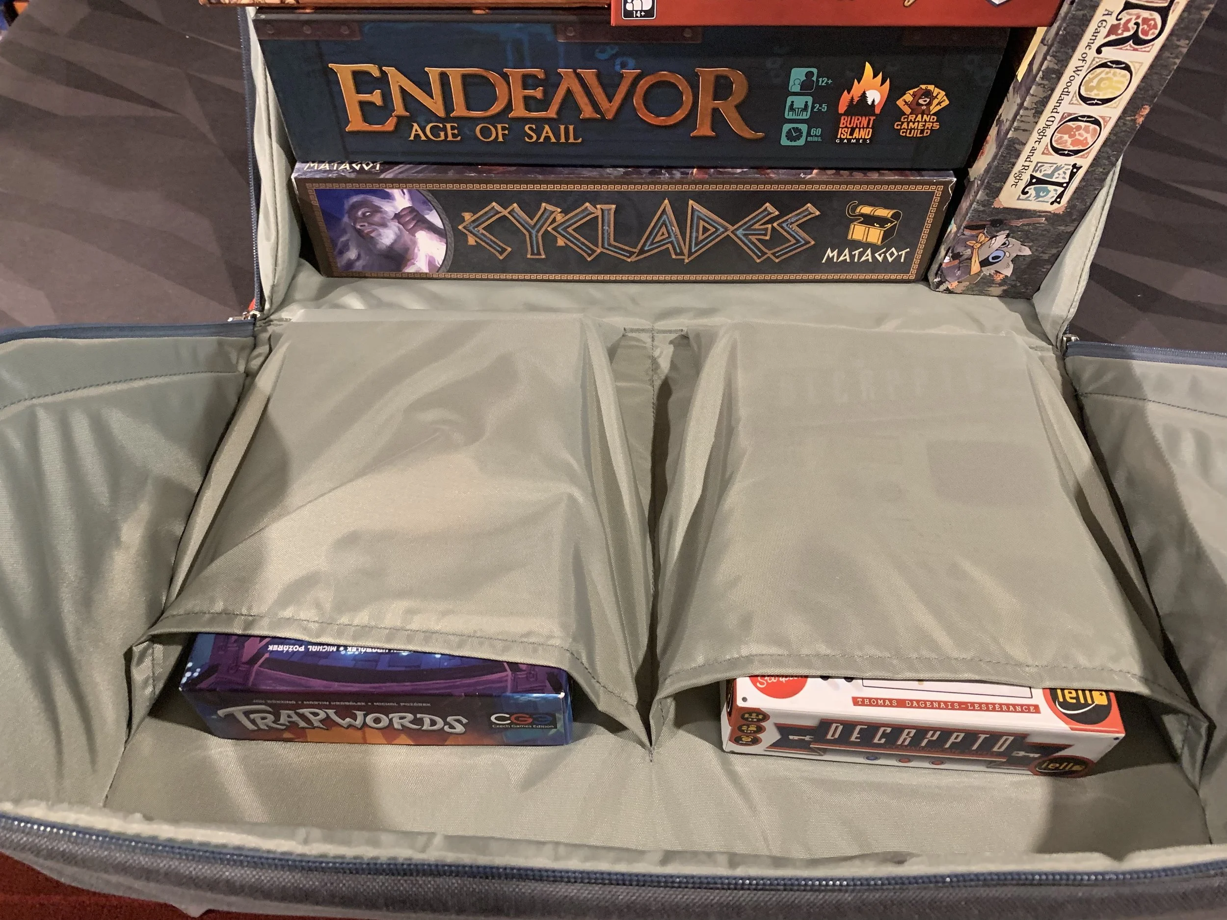 Jeremiah—And don’t forget about that zipper cut that angles towards the front of the bag! It seems such an obvious thing, but being able to lay the front down flat while either loading up, or displaying the games you brought to game night, without that weird folding/bunching that happens with other bags, is just so great!