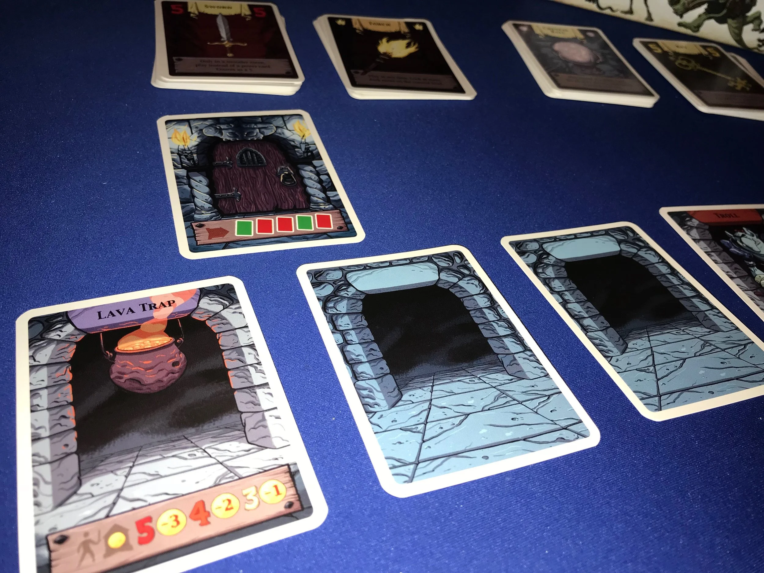 - Traps - These are all different. Most of them offer your opponents a chance to to ambush you, they target the player with the most Gold, or the least Wounds, etc. causing them to lose Gold or gain a number of Wounds depending on the highest card played for that room.