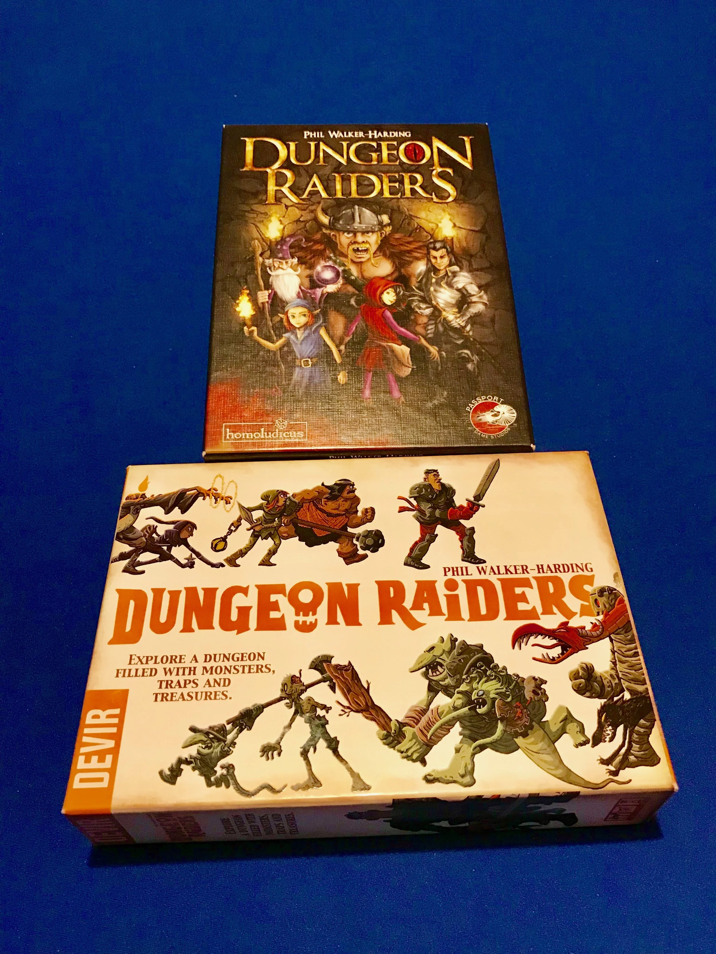 /They raided it twice! A couple years ago I happened upon a little booth at Origins: Devir Games. As an international company, Devir is still (in my opinion) a little under-recognized here in the states. I was demoing one of their new 2-player releases, Holmes: Sherlock and Mycroft, and while I was doing that AJ (co-host of Boardgames Daily) and our friend Sepos demoed another title they had at the show: Dungeon Raiders. Matt, who was working the booth and is a super-nice dude, handed me a copy of Holmes for review, and I mentioned that my friends were raving about Dungeon Raiders and I'd be more than happy to check it out too. He was hesitant, because it was an older title and not even really a Devir game but something they were distributing. But they had plenty of copies so he said: "Sure, why not?!" The rest is history. I reviewed the original here on the site, and you can check it out here.