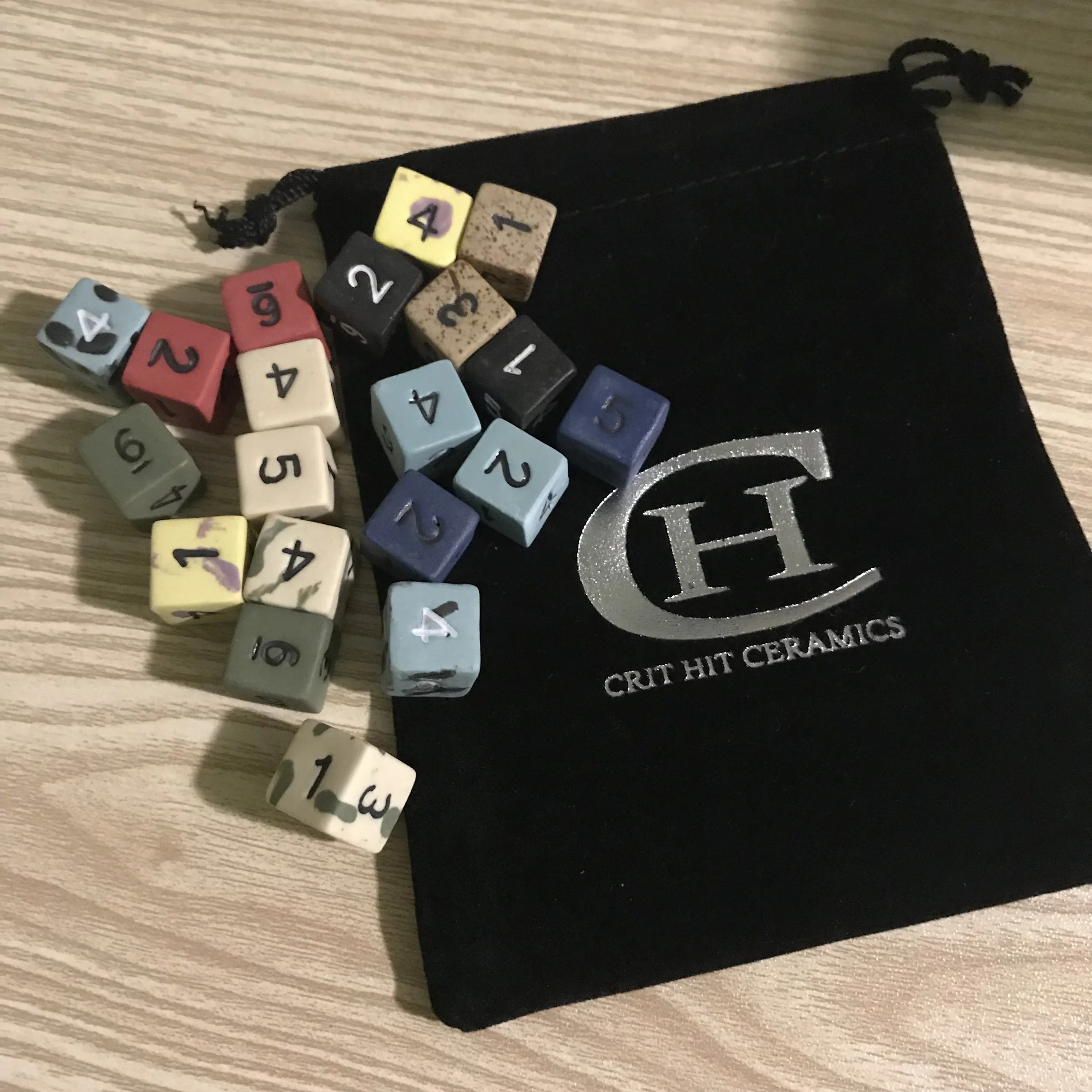 you'll get a pair od 6 sided ceramic dice, you pick from the available colors! From Crit Hit Ceramics